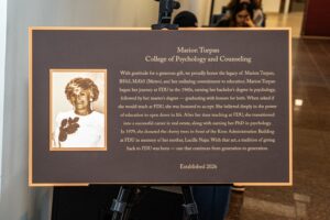 Fairleigh Dickinson University (FDU) entered a new chapter in its history this week with an official ceremony marking the largest gift in the university’s history: a transformational $6 million anonymous donation to name the Marion Turpan College of Psychology and Counseling.