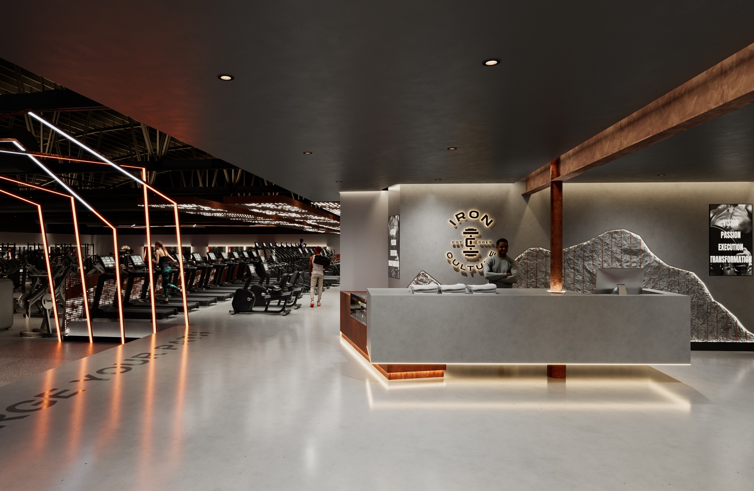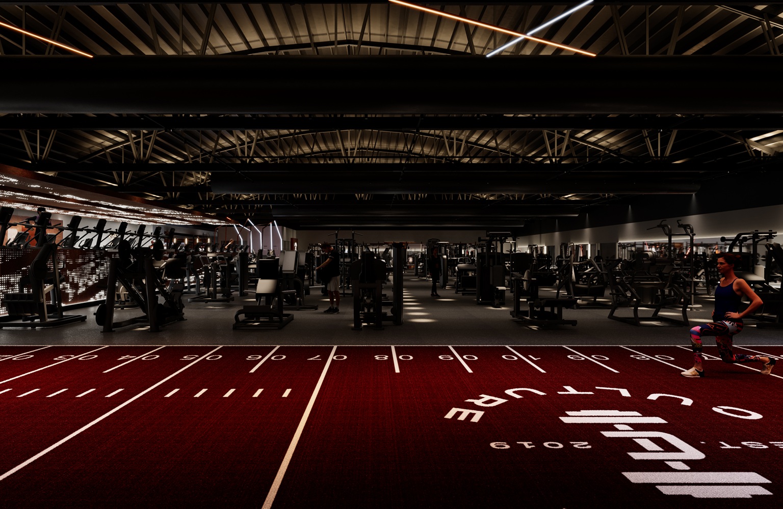 The gym’s striking interior design was conceived by the renowned U.K. architectural firm zynk Design. Their vision draws inspiration from modern fitness spaces globally, emphasizing natural flow, clear sightlines, rugged industrial metallic themes, and ambient, “sculptural” lighting designed to highlight members’ progress.