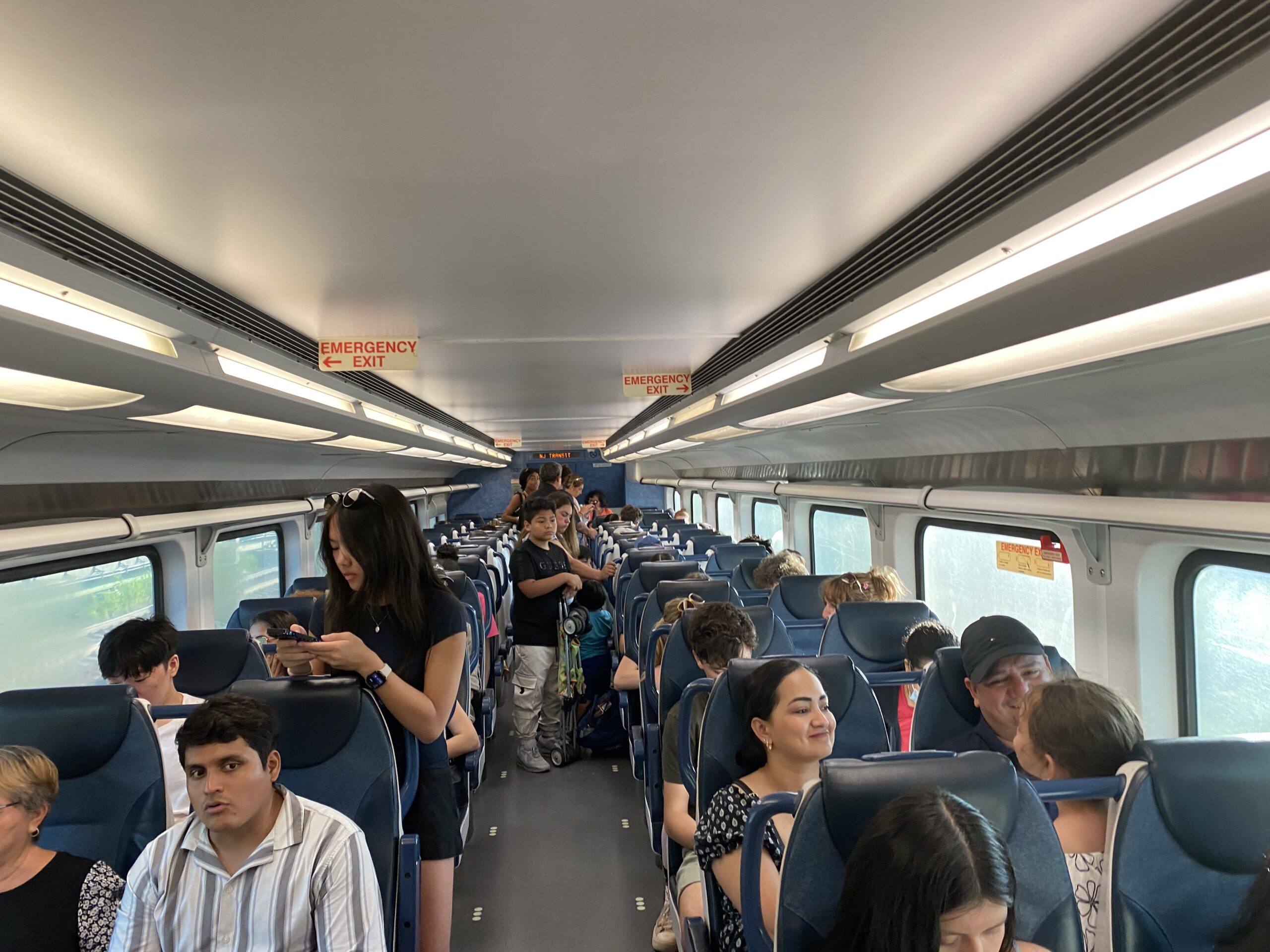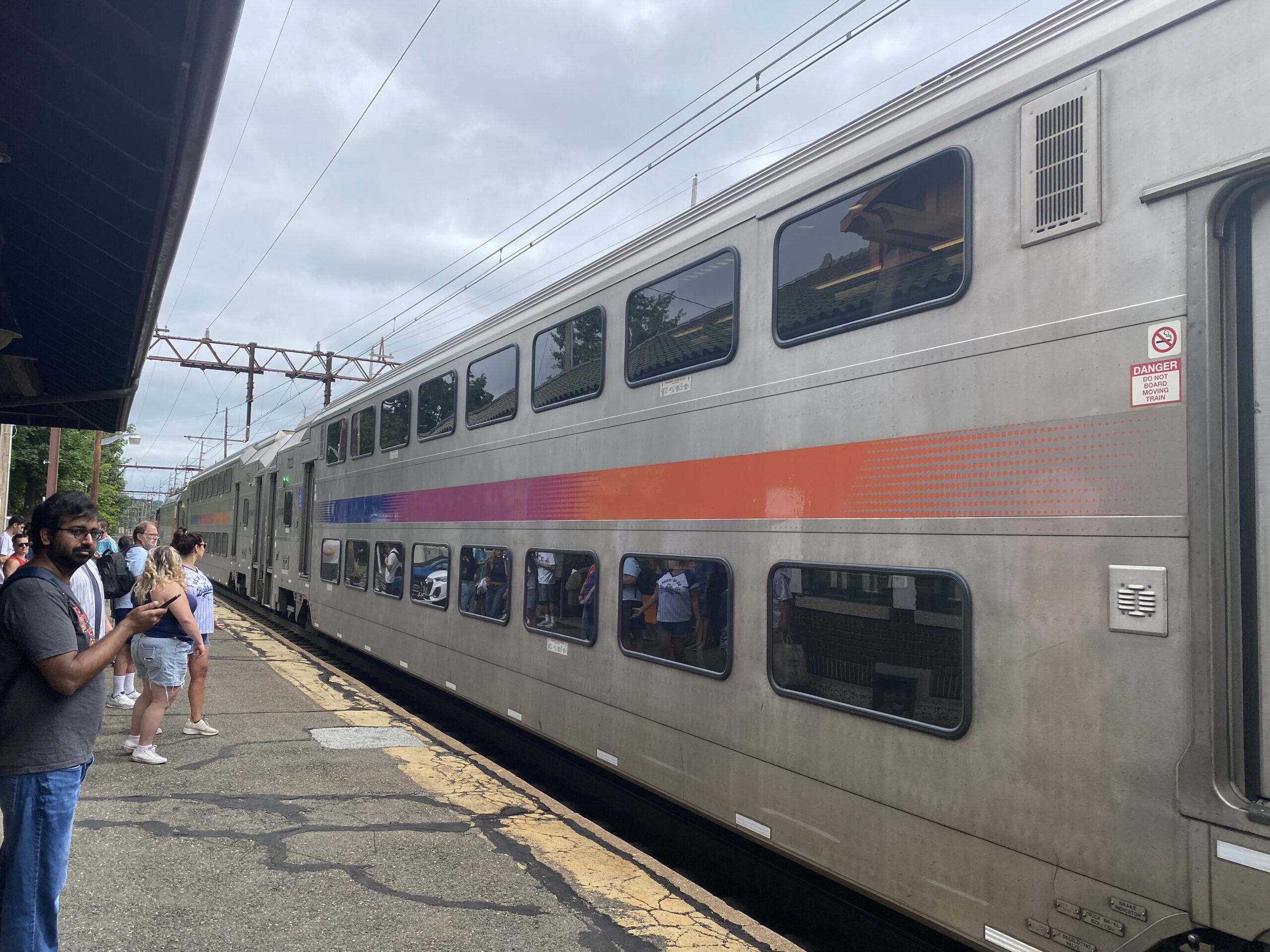 Were the trains packed? Of course. And those boarding at the stadium got the seats, but I was able to sit by the time the train got to Newark and some started to disembark. And I don’t mind standing for a few minutes if the train leaves right away and it has air conditioning — two factors that, left unchecked, would lead to unrest.