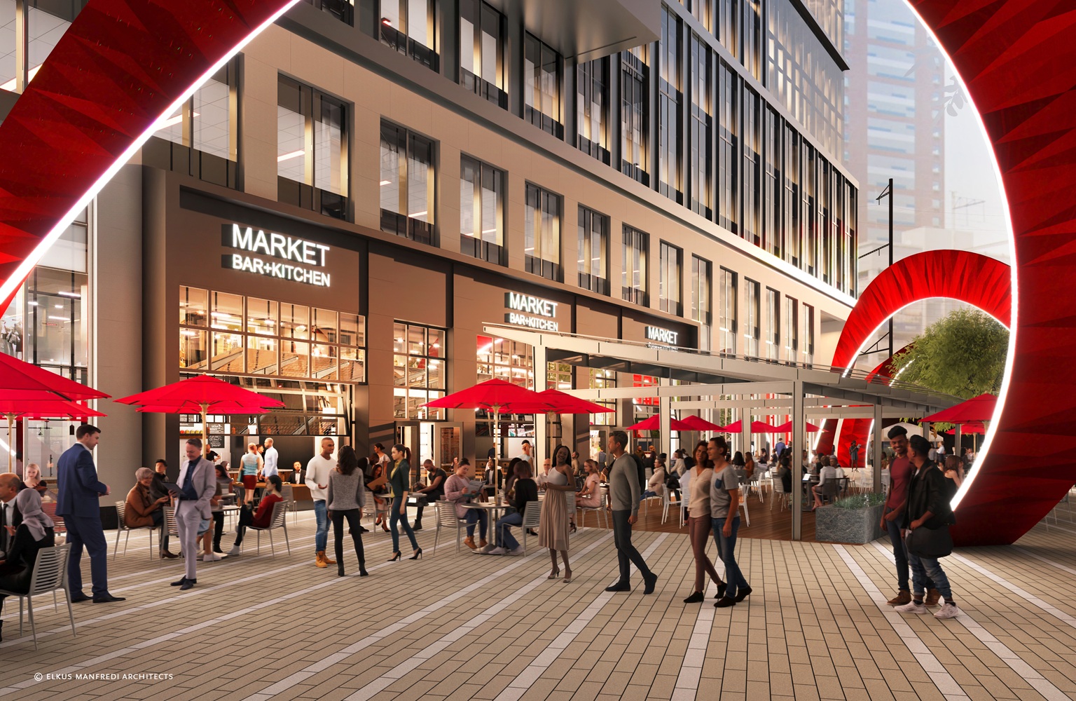 Scheduled to open in Spring/Early Summer 2026, the Strand Market will function as a dynamic food hall where “innovation meets community.” Designed with seamless indoor-outdoor flow, the market will feature a covered pavilion and the “Collaboration Commons,” inviting researchers, students, and locals to linger.