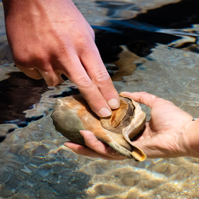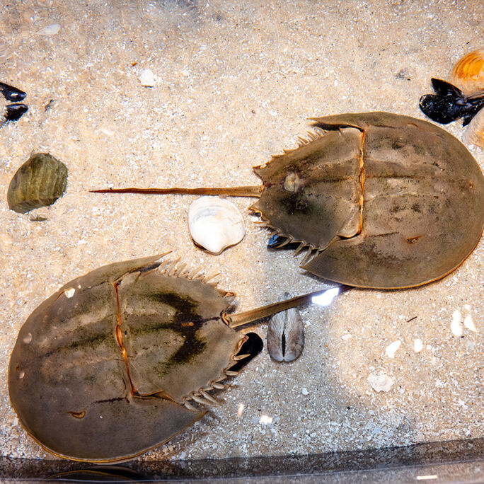 Each species in the tank relates to a key climate change challenge, and trained LSC STEM educators will foster conversations around these challenges. For example, guests meet prehistoric horseshoe crabs; they’ve existed for 450 million years but their spawning grounds are now at risk from sea-level rise. Visitors can also feel the knobby shells of sea snails, which ocean acidification makes brittle, and encounter sea stars, whose range may expand northwards as waters warm.