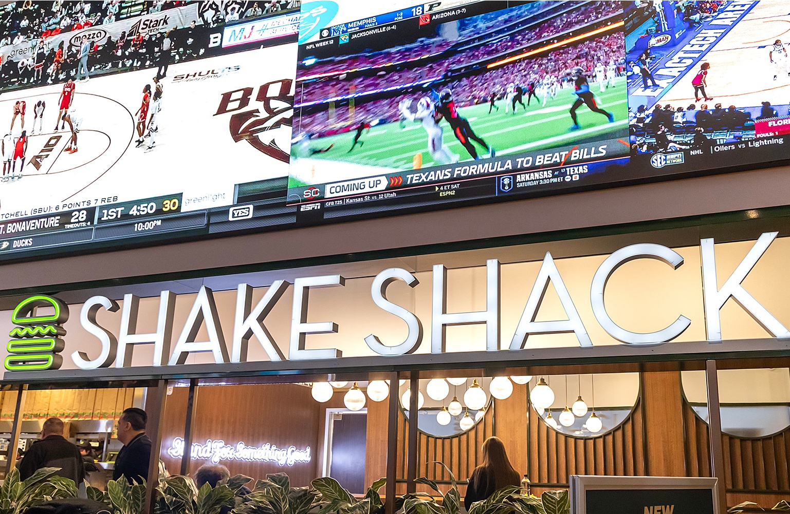 Shake Shack Integration: The sportsbook houses a Shake Shack restaurant inside, offering its full signature menu, including ShackBurgers and crinkle-cut fries, blending high-quality casual dining with the sports environment.