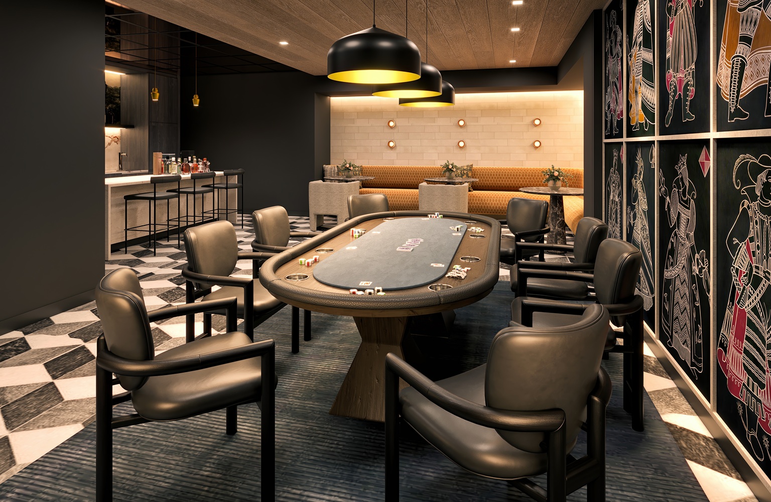 - A bowling alley, speakeasy, and children’s playroom