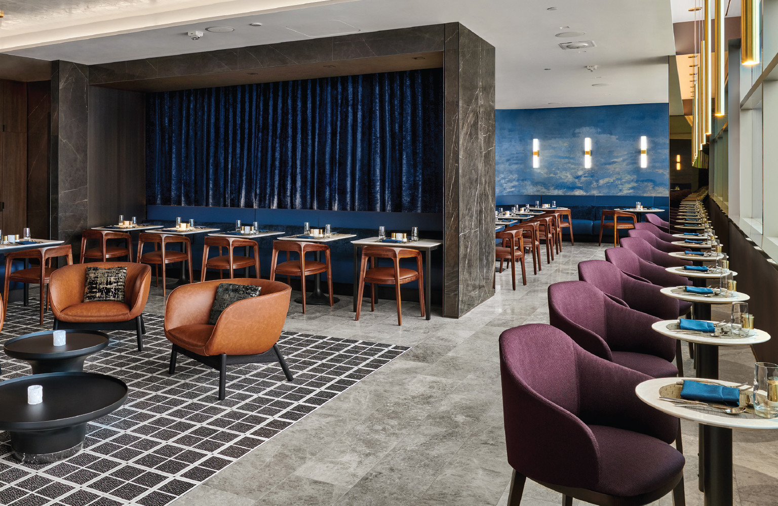 “The average party size on international trips is 1.3,” Loveland said. “So, it was very important to put in the single table, so we could maximize the seating. We do have two tops that can be pushed together to create larger tables — in the summer, we tend to get more families traveling together — but the key is maximizing efficiency.”