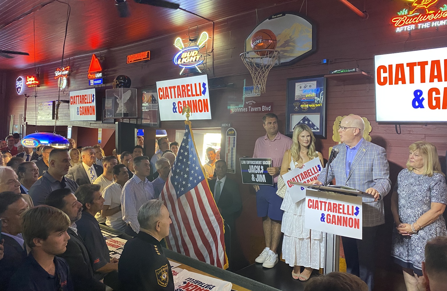 While introducing him, Ciattarelli said the state has crisis in public safety and law enforcement, and that the state has prevented “the men and women in blue” from doing their job.